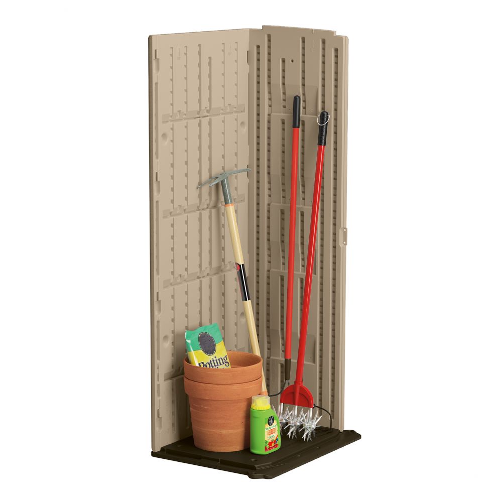 With its tall profile, this Vertical Shed is great for storing ladders, long-handled tools, garden accessories, and more when space is at a premium. The durable, all-weather resin construction provides water resistance and UV protection, while the multi-wall panels are engineered for superior strength and stability. This stylish shed can also accommodate up to 4 interior shelves (BMSASHELFV1 not included) to make organizing your essentials a breeze.