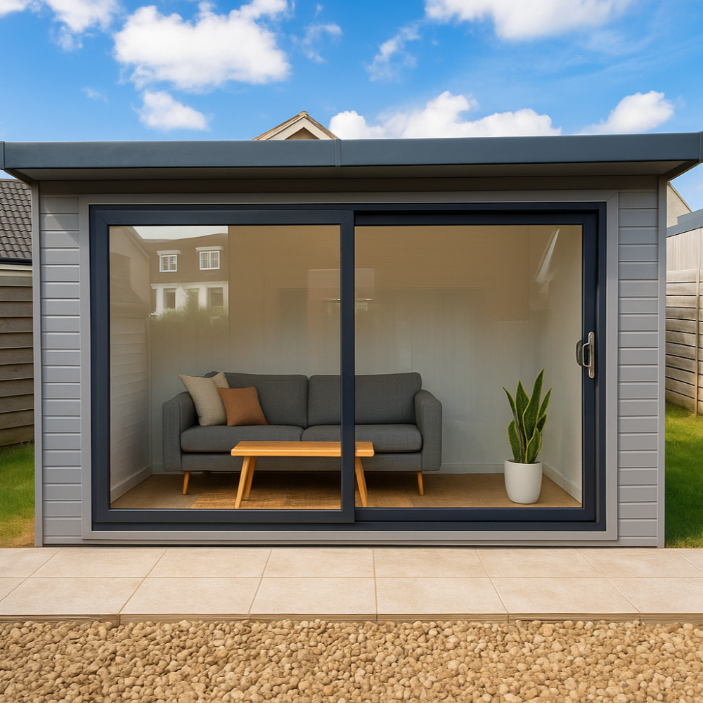 The original Garden Studio, pre-designed and priced ready to order. Fitted with UPVC Double Glazed Sliding doors, insulated walls & roof and laminate floor as standard, this model is ready go from the moment it's installed. Our Garden Studios come complete with 8ft or 10ft Sliding Patio doors to control air-flow and allow maximum natural light into the Studio.