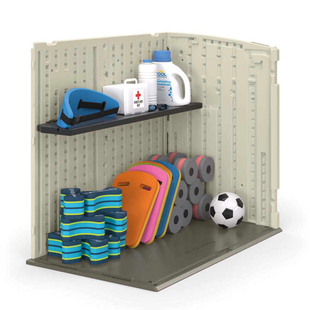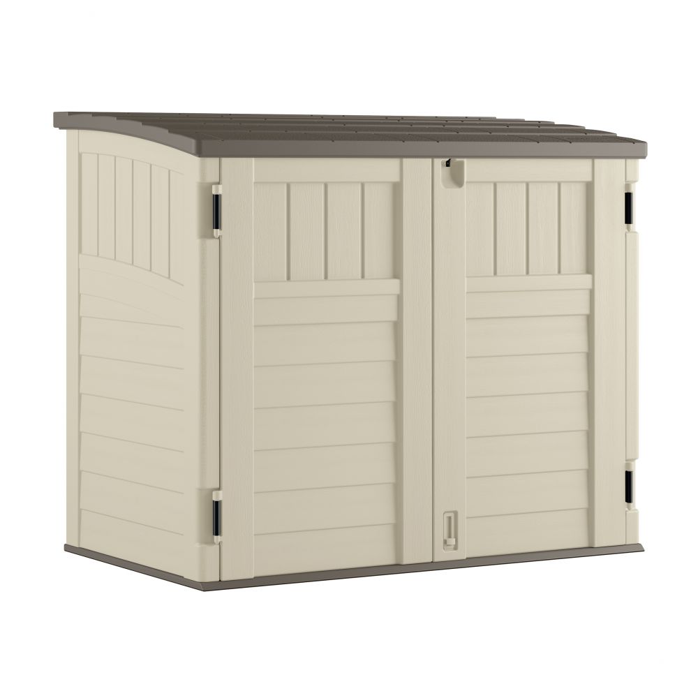 This handy Horizontal Storage Shed can handle any and all of your outdoor organisational needs. Perfectly fits 2 x 240L wheelie bins and Ideal for stowing, lawn and garden products, bicycles, and more, this stylish storage solution is essential in every season. Additional features include durable, multi-wall resin construction for year-round strength and stability, a reinforced floor for heavier items, a 3-door locking system for added security, and a sleek, low-profile design that fits neatly in many spaces.