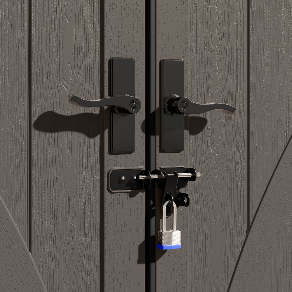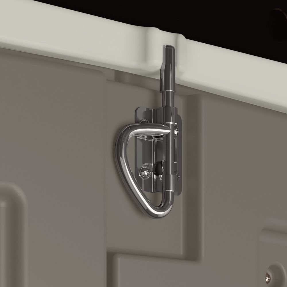 This slim Tremont® 8 ft. x 4 ft. Storage Shed by Suncast® is the perfect solution for storing all your lawn and gardening items when garden space is limited. The compact footprint design fits nicely along a house or garage yet still has plenty of space for storing long handled tools, ladders, patio umbrellas and gardening supplies. Utilise the two included corner shelves for additional storage and organisation. Two skylights along with the large windows in the doors provide natural light. Sturdy double doors allow you to access your items easily and is equipped with pad-lockable metal handles for added security (lock not included). Constructed of metal reinforced, multi-wall resin panels, this sturdy shed is weather resistant and built to last.